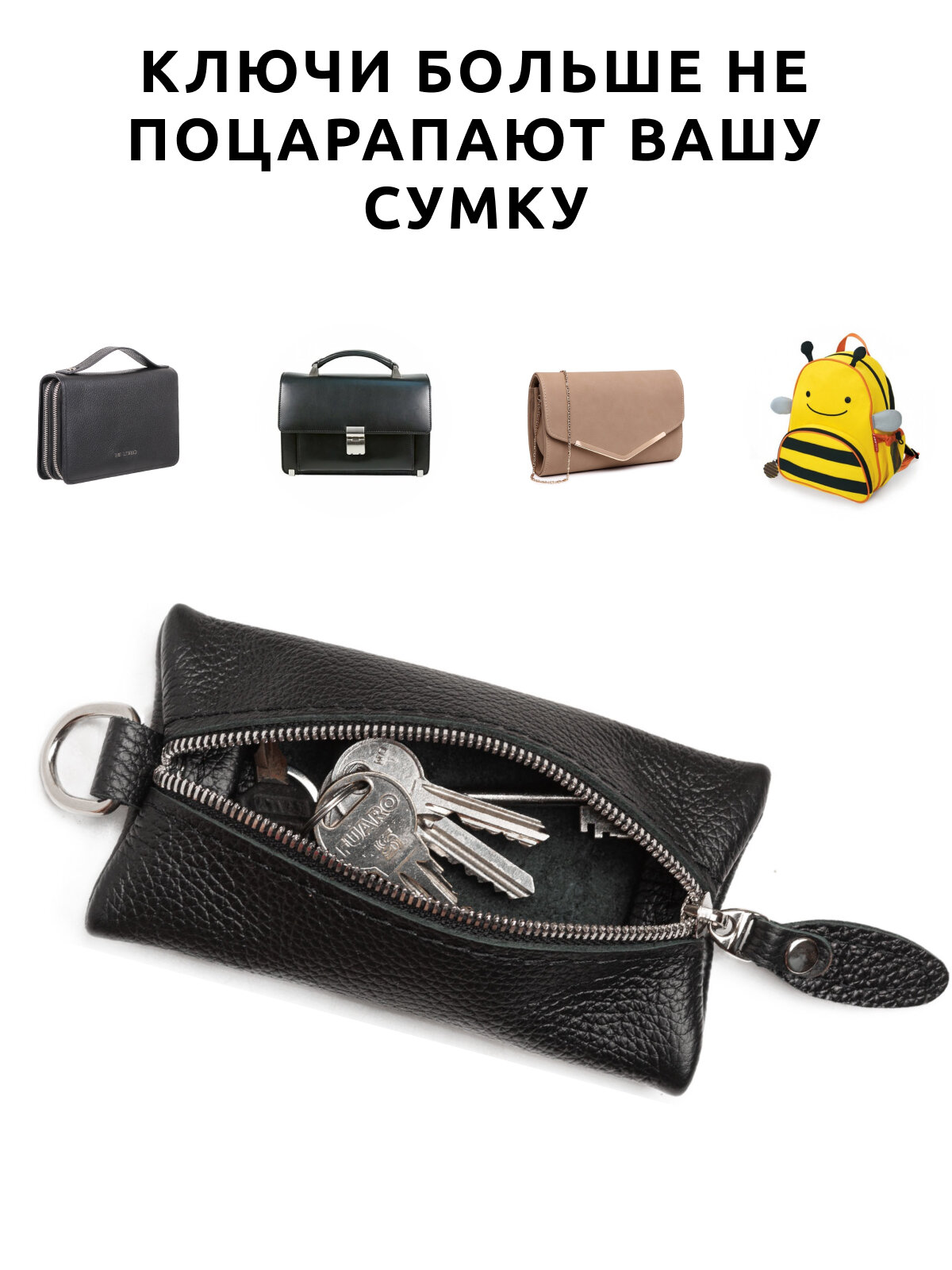 Ключница кожаная карманная для ключей на молнии мужская и женская