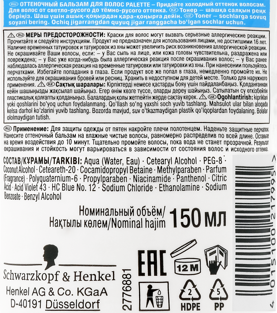 Шварцкопф / Shwarzkopf Palette - Оттеночный бальзам платиновый блонд 150 мл