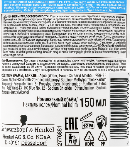 Palette Оттеночный бальзам, Холодный блонд, обновление цвета и уход, временное окрашивание 150 мл