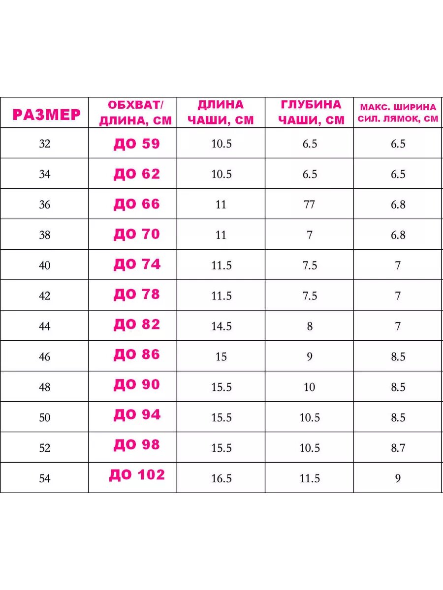 | Тип чашки | без косточек / с пуш-ап |