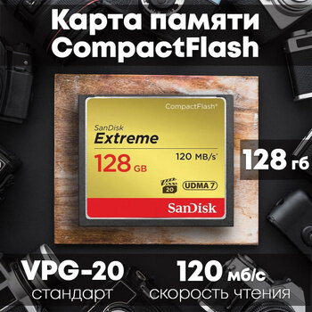 Карта памяти SanDisk Extreme Compact Flash, 128 Гб
