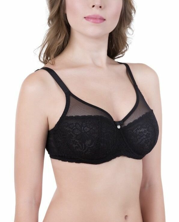 Novika Бюстгальтер Angelina на косточках с принтованным кружевом (70F / черный с бежевым)