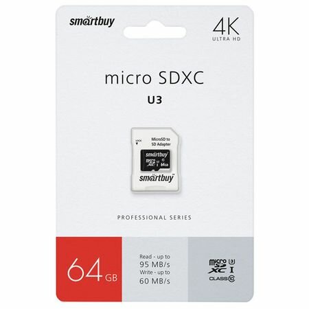 Купить micro SDXC карта памяти Smartbuy 64GB Class 10 (с адаптером) LE