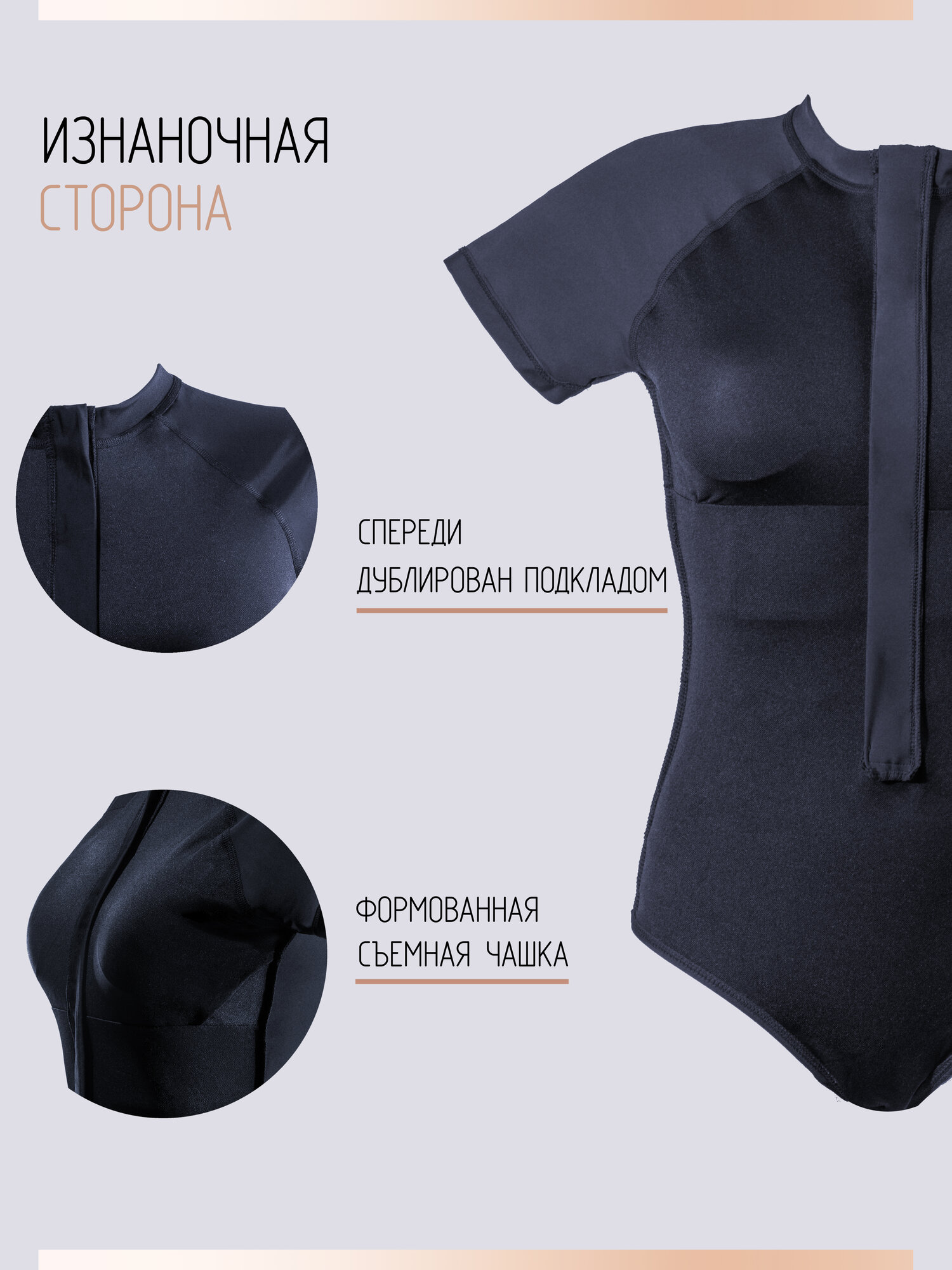 Купальник женский слитный спортивный CSiman с рукавами и на молнии для бассейна и пляжа, утягивающий эффект, темно-синий, размер 46