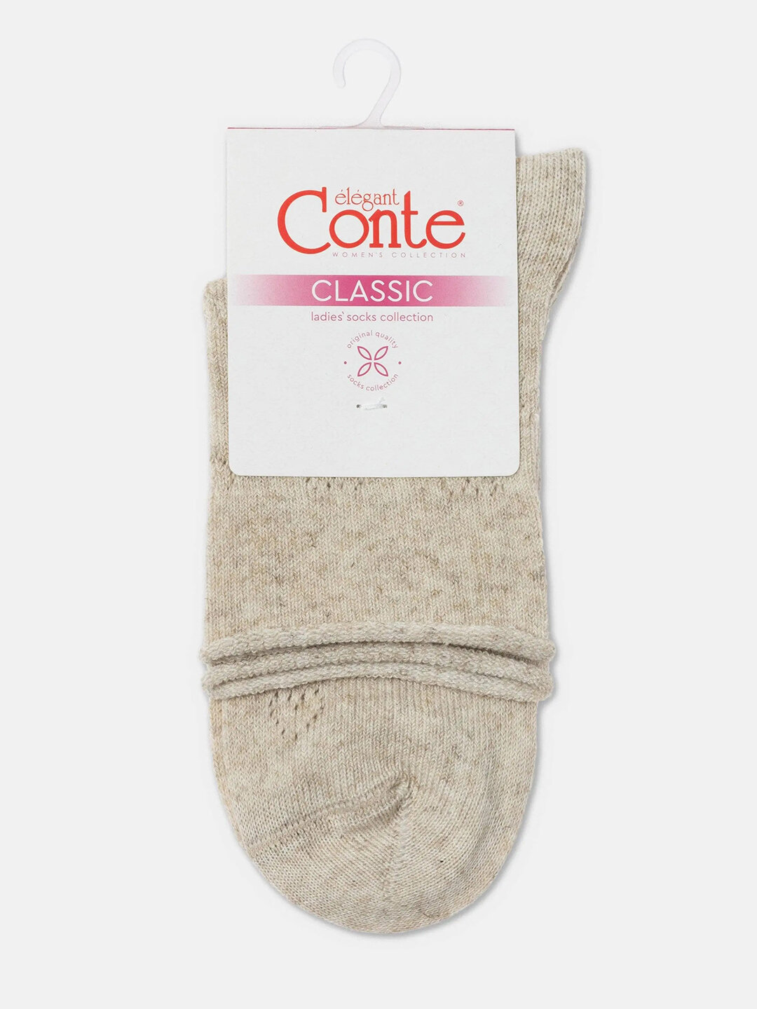 Носки женские без резинки из хлопка и льна Conte Classic, размер 25(38-39), цвет 542-Бежевый