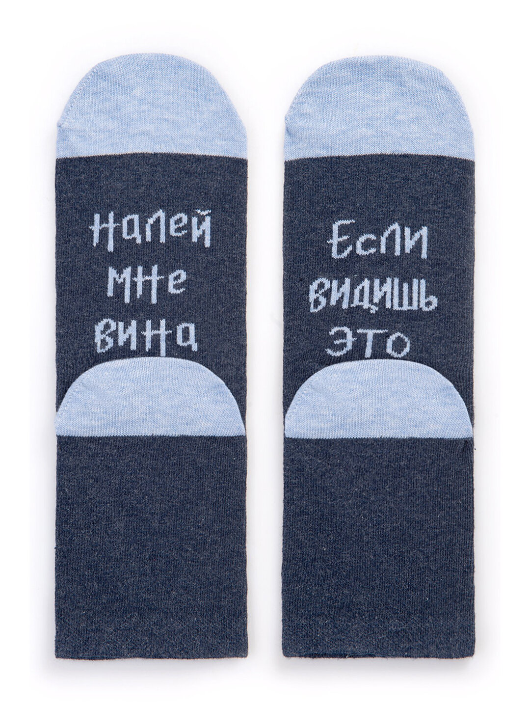 Носки с принтом высокие, длинные HappyFox, HF0159 размер 36-40, цвет видишь.налей.т.джинсовыймеланж