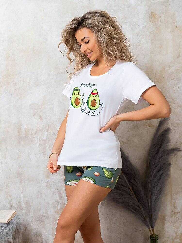 Пижама Ивановский текстиль, размер 44, авокадо, синий