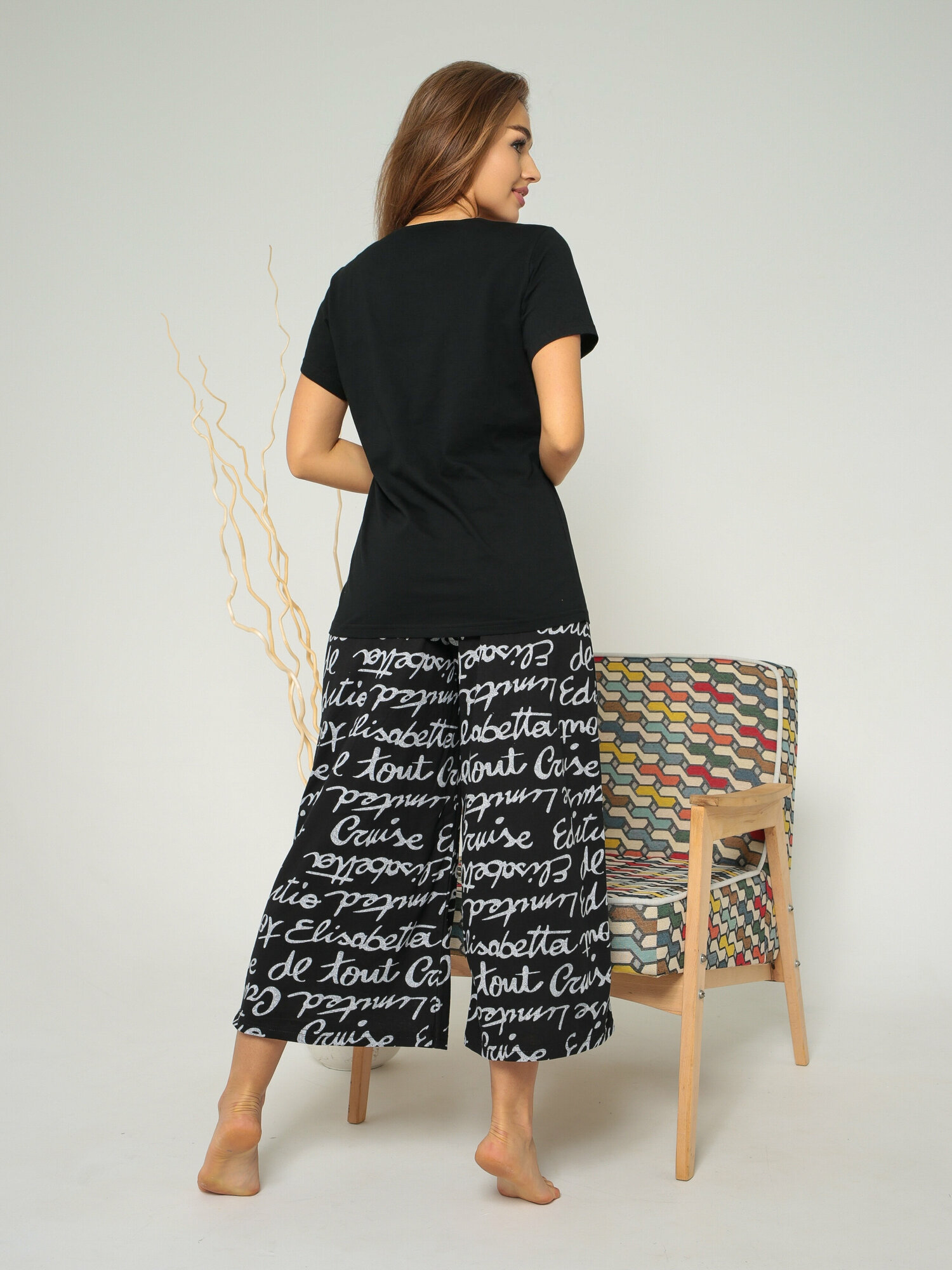 Пижама женская с бриджами, хлопок, цвет черный, София37, размер 48