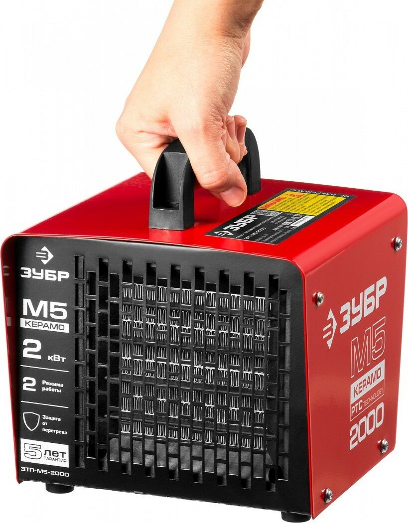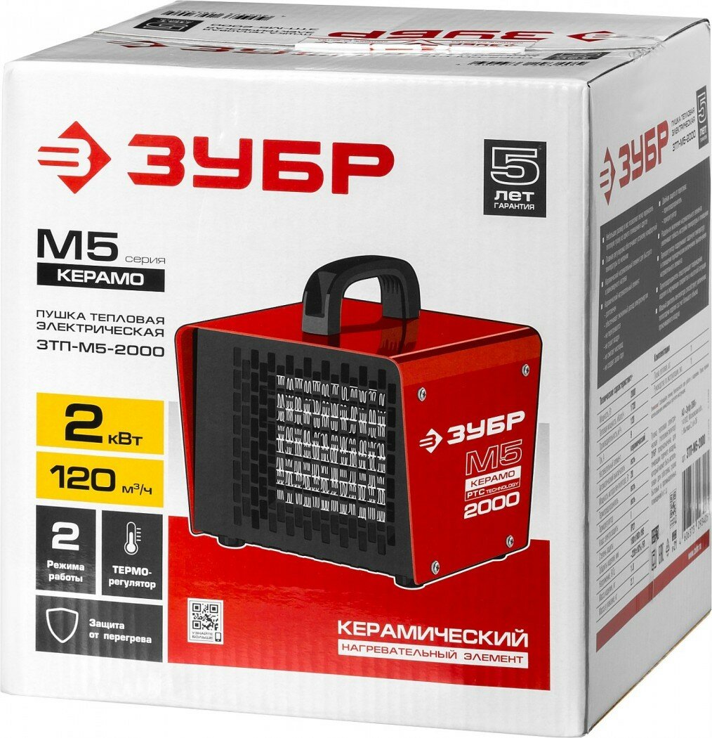 Пушка тепловая М5-Керамо, ЗУБР ЗТП-М5-2000, электрическая, РТС керамический нагревательный элемент, регулировка темп., 2 режима работы, 220В