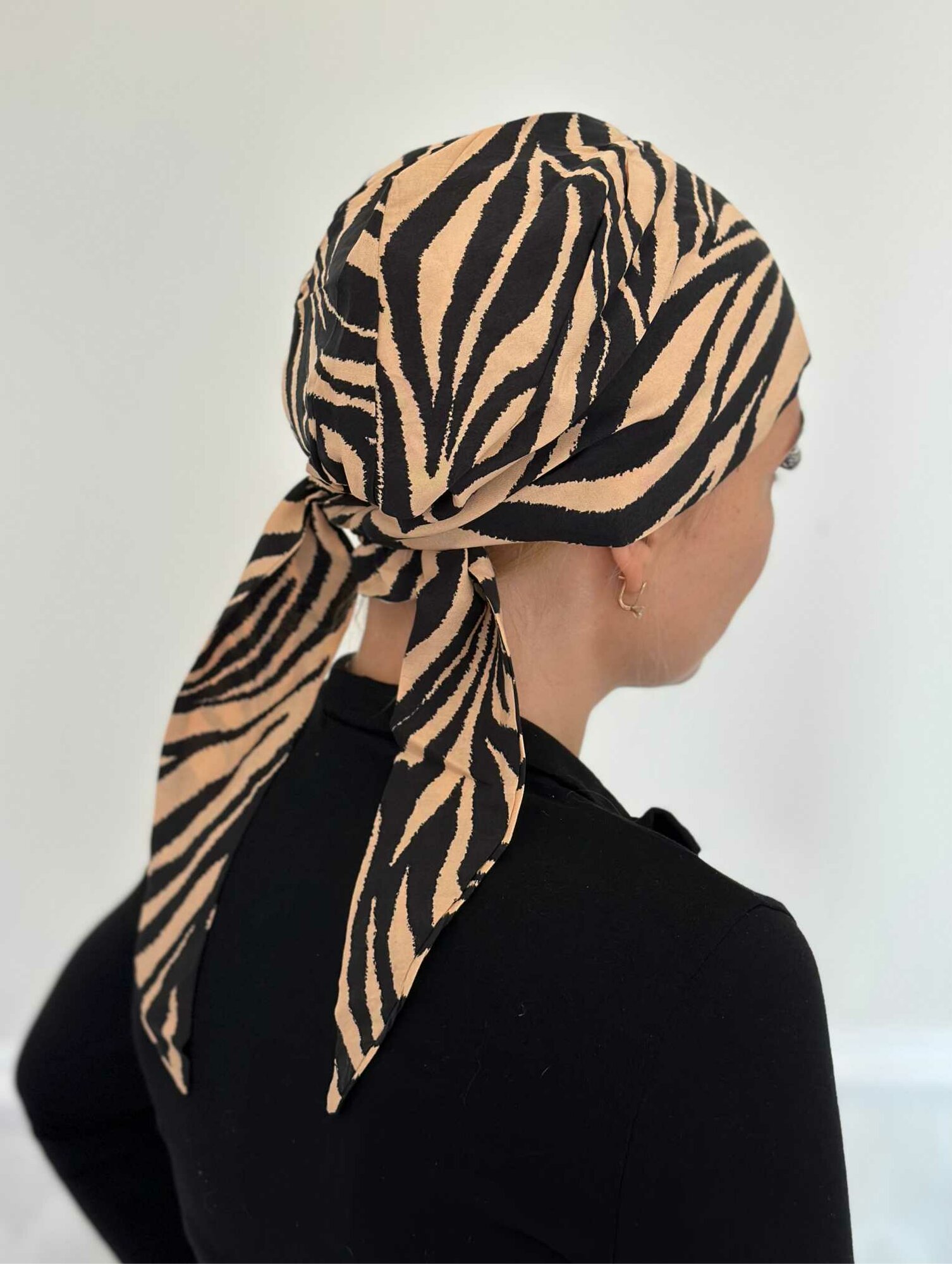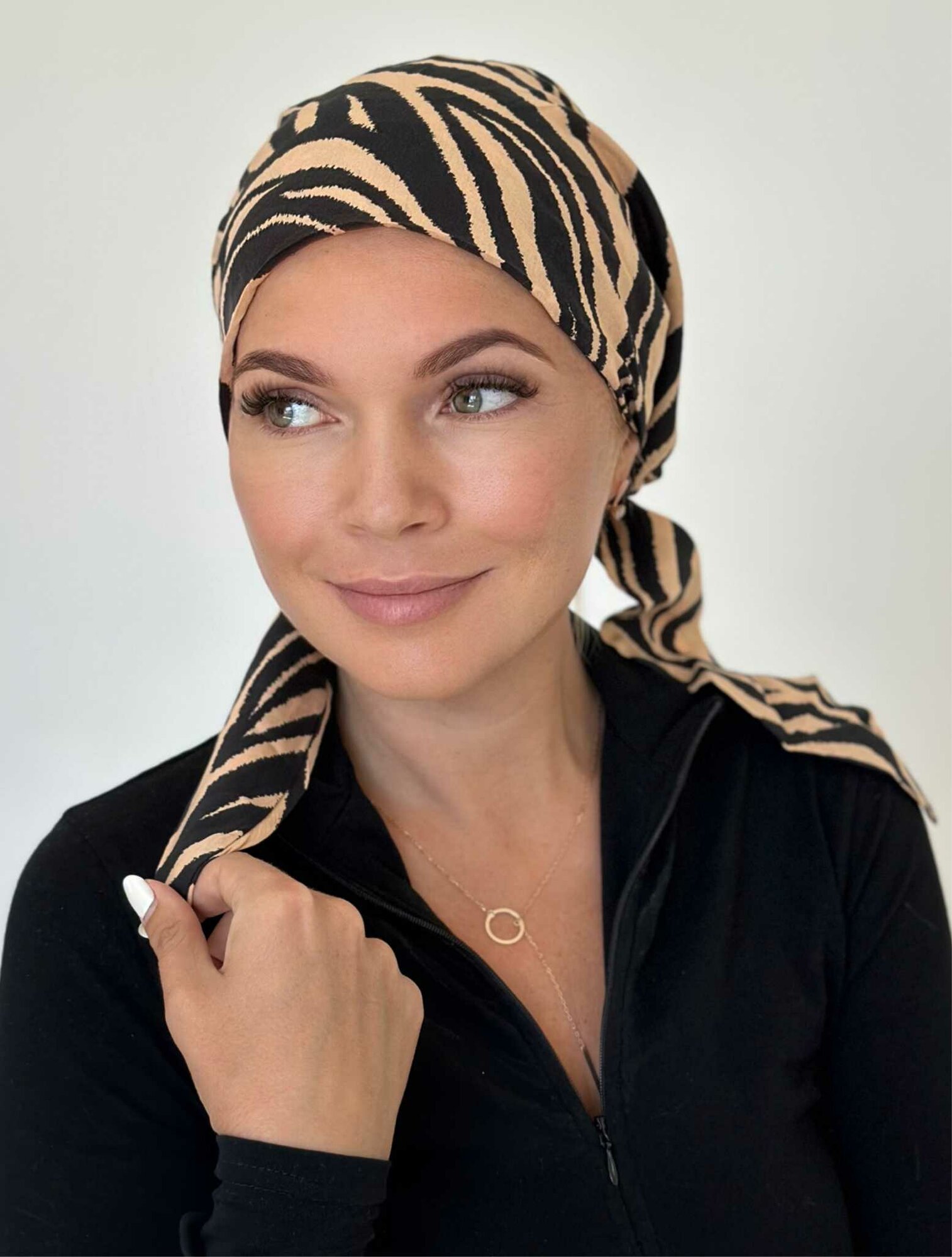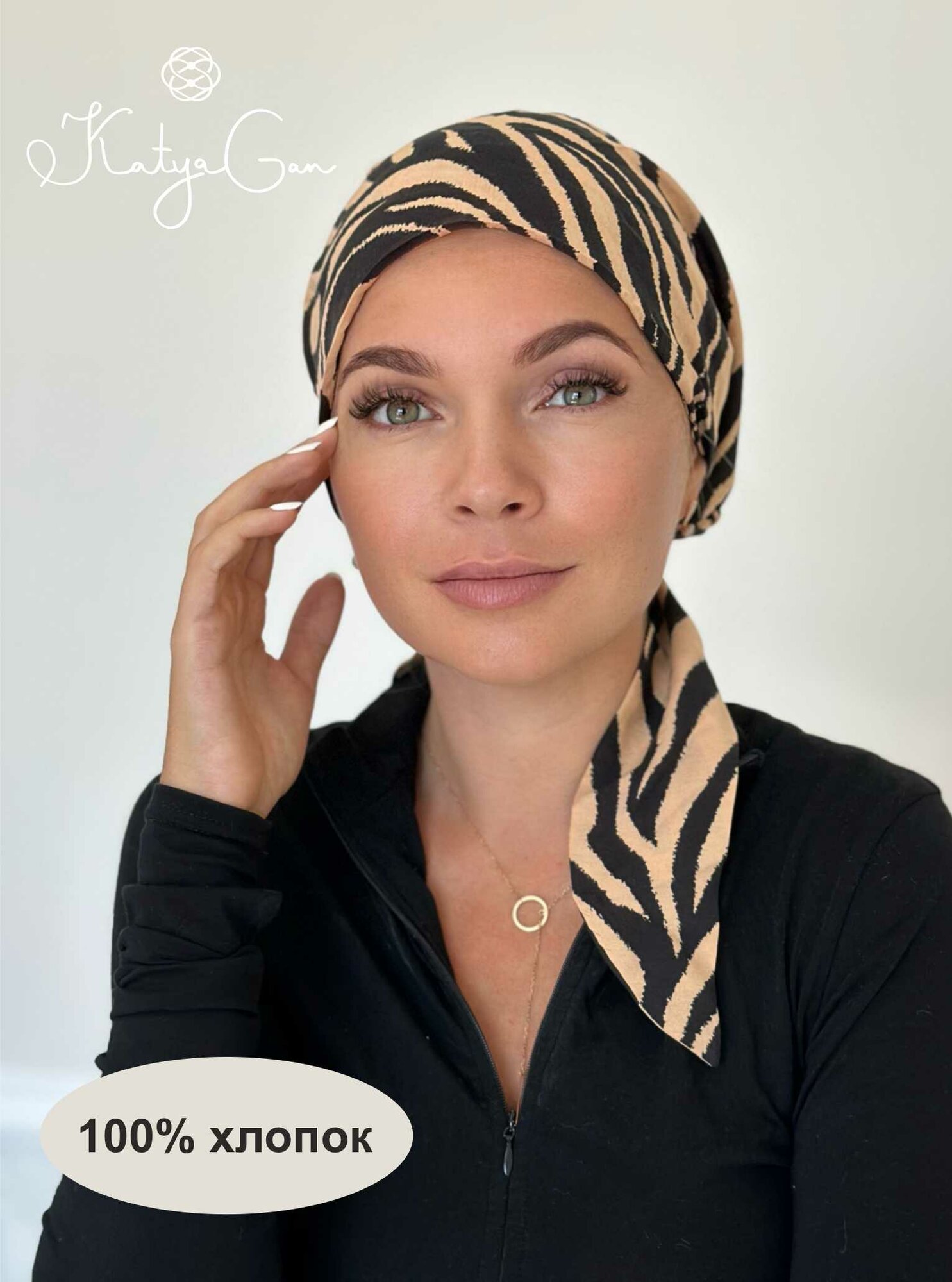 Тюрбан летний после химиотерапии шапочка чалма Мишель бежевая-зебра