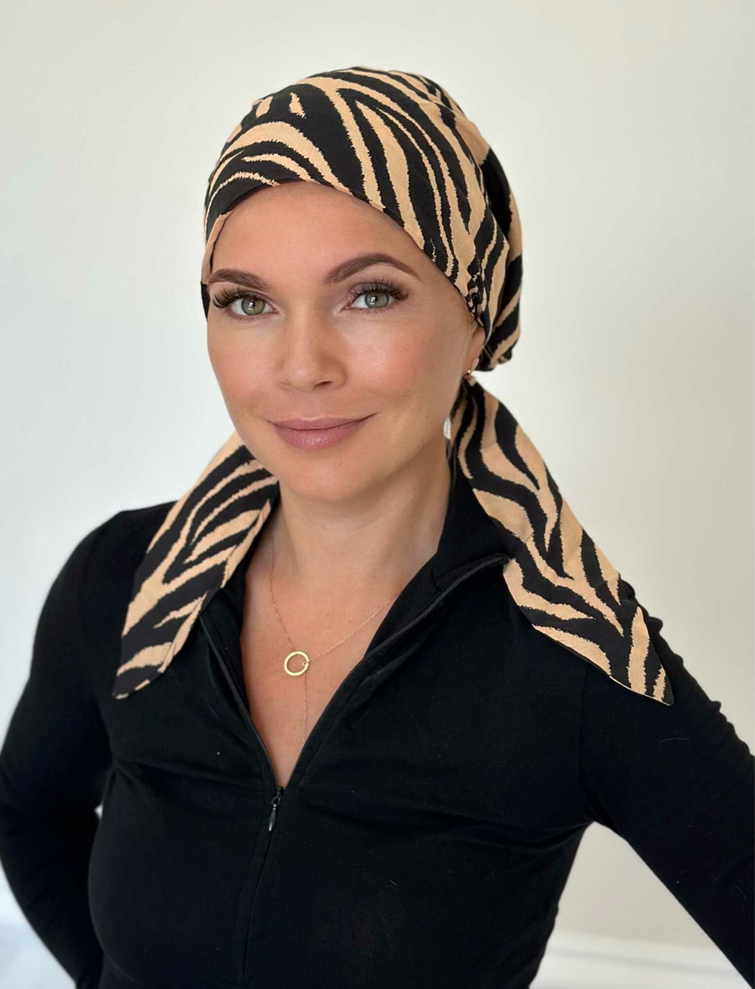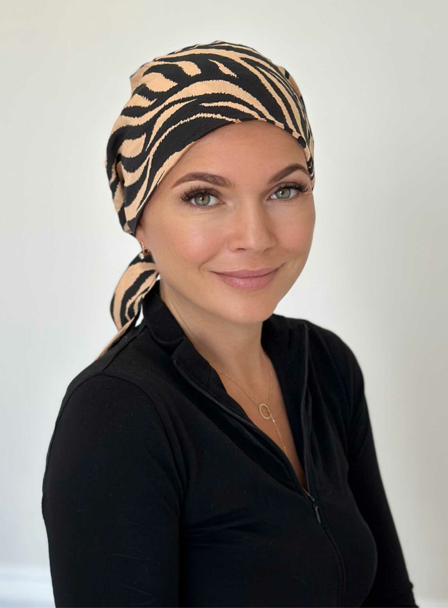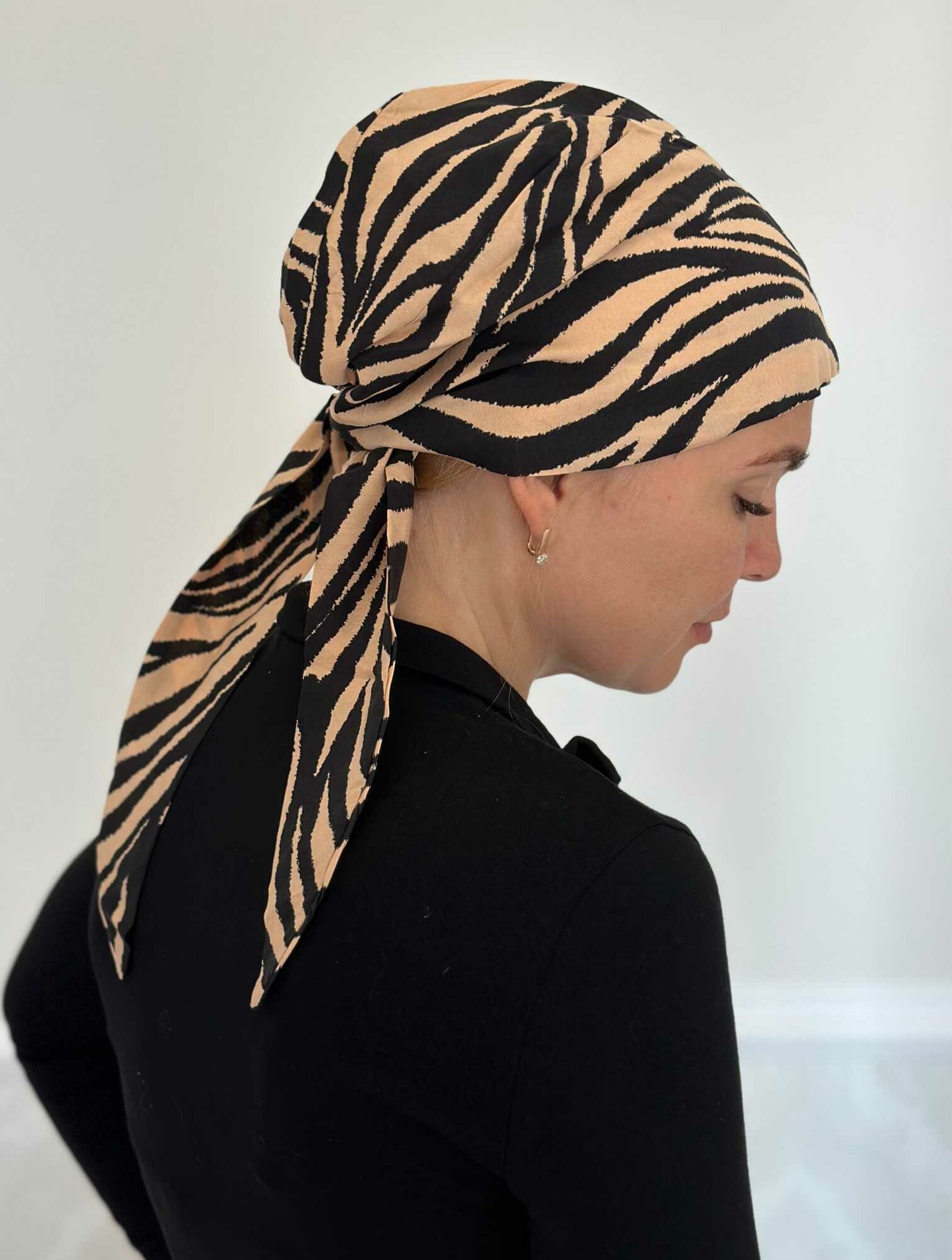 Тюрбан летний после химиотерапии шапочка чалма Мишель бежевая-зебра