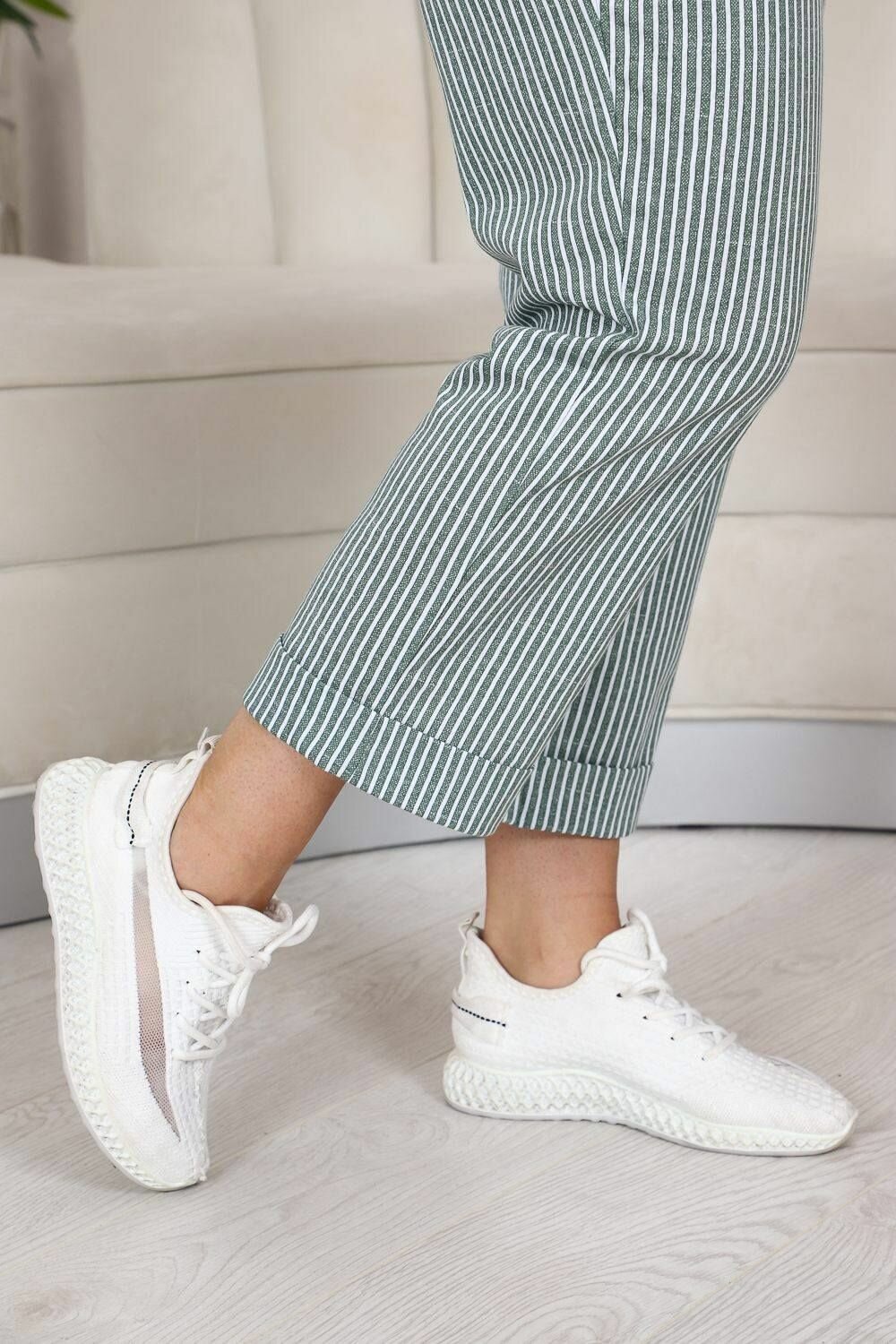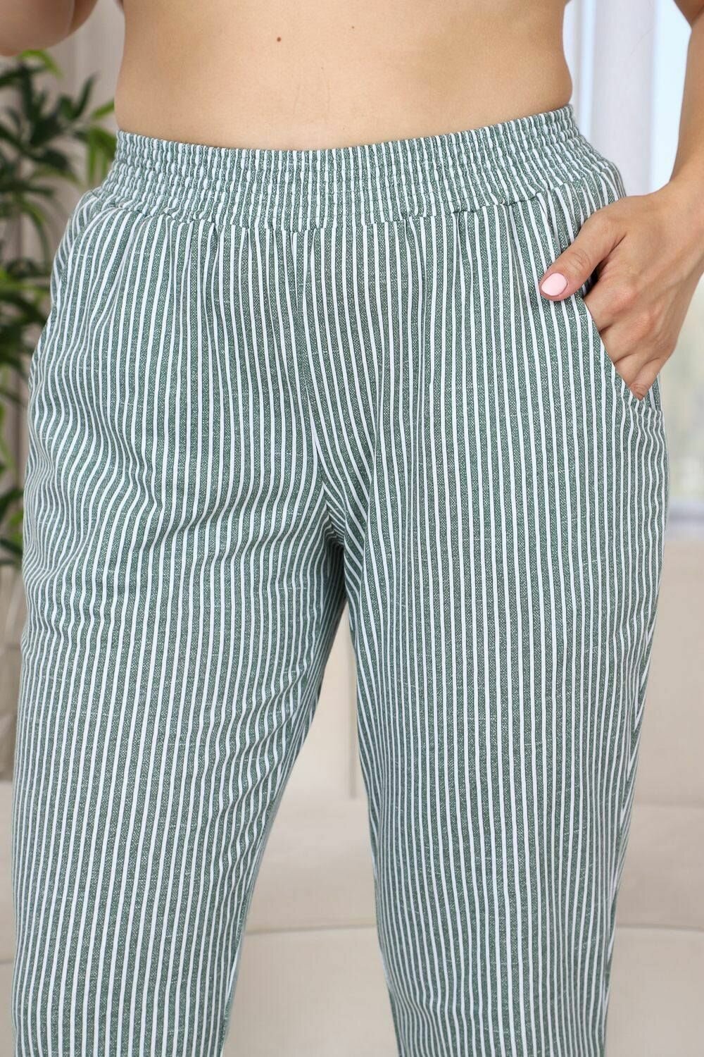 Женские брюки в полоску хаки, размер 50