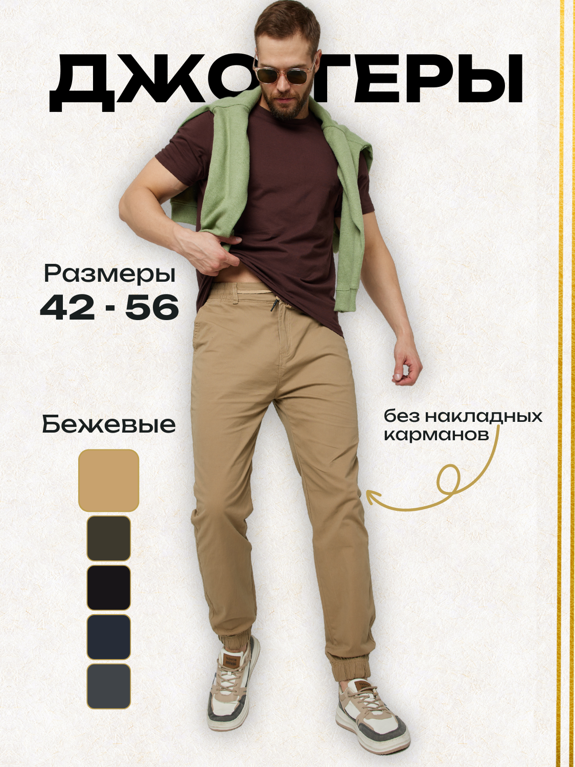 Джоггеры мужские EBSH 40 размер бежевые