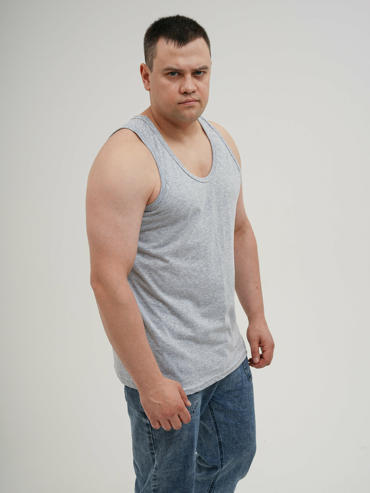 ММ-0006 Мужская майка большого размера из хлопка, тонкие лямки 68 Серый