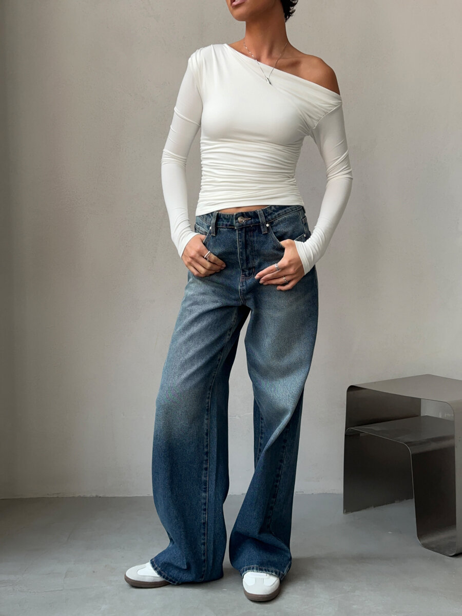 Топ лонгслив с открытым плечом One side, цвет белый, размер L
