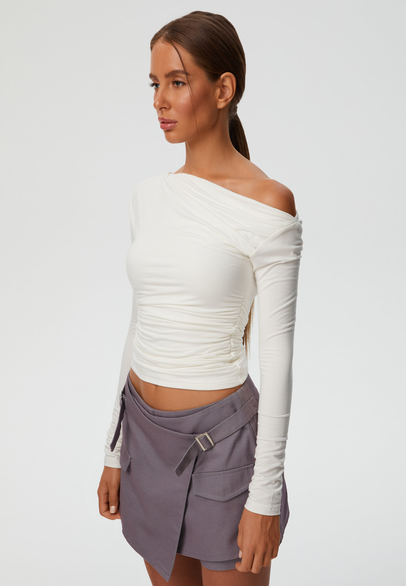 Топ лонгслив с открытым плечом One side, цвет белый, размер XXS