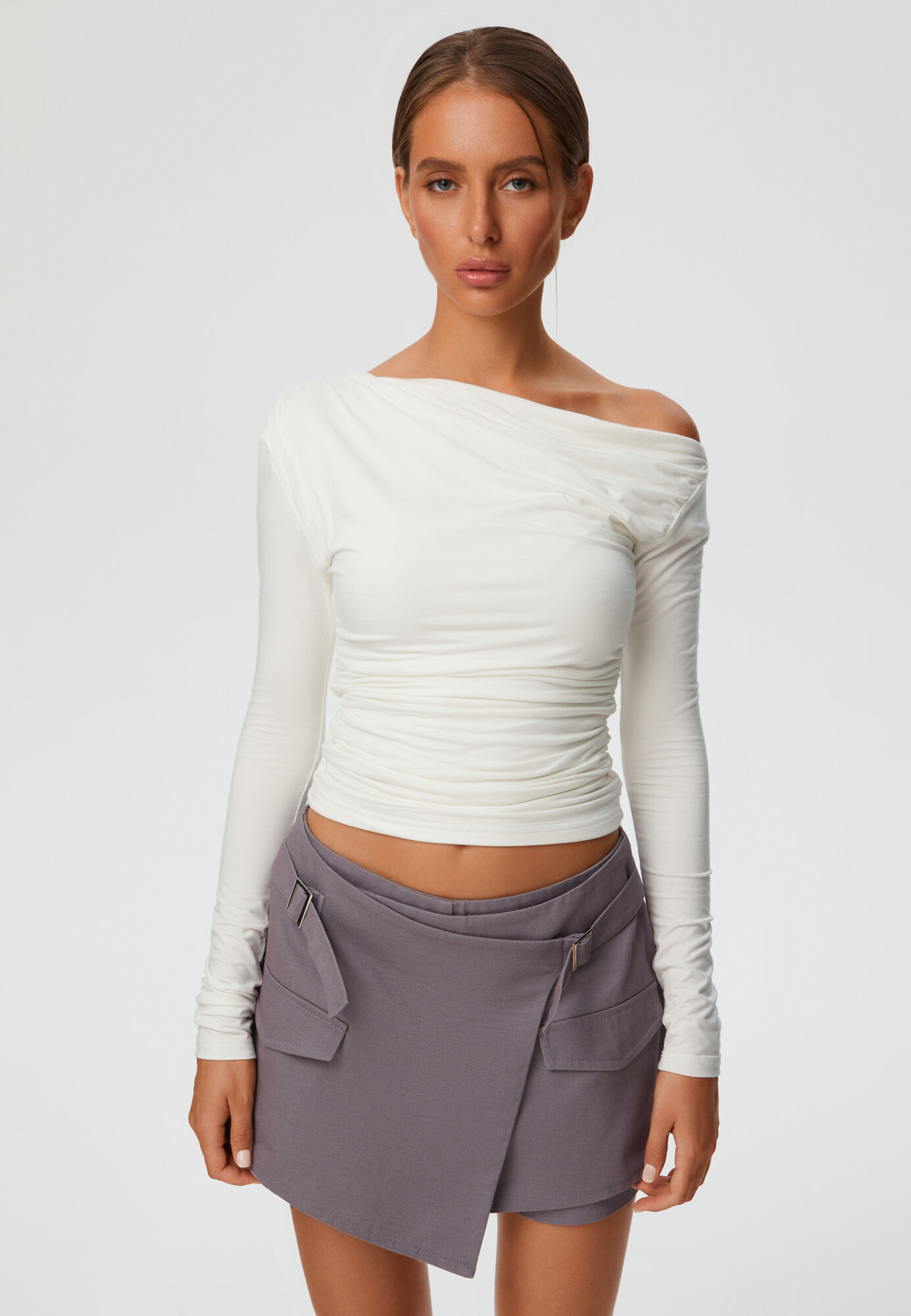 Топ лонгслив с открытым плечом One side, цвет серый, размер XXS