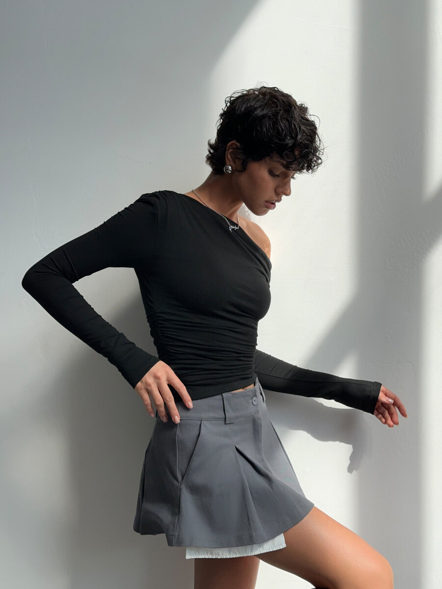 Топ лонгслив с открытым плечом One side, цвет черный, размер XS