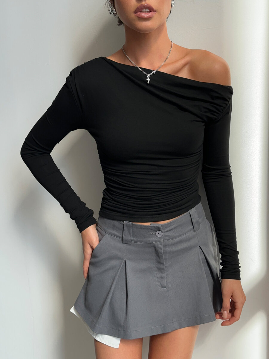 Топ лонгслив с открытым плечом One side, цвет черный, размер S