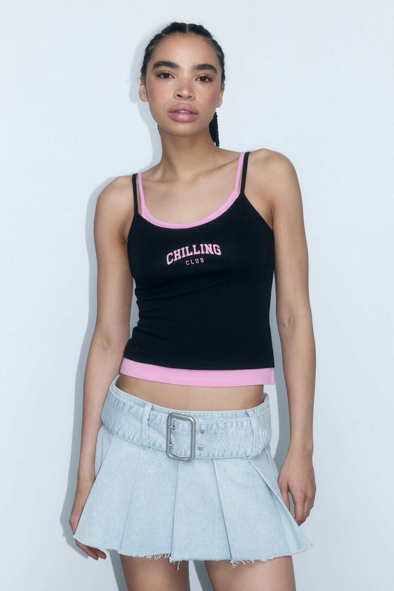 Майка на бретельках двуслойная с надписью Befree 2422121014-55-S