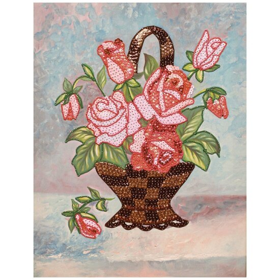 Мозаика из пайеток на холсте Букет роз МХ-16