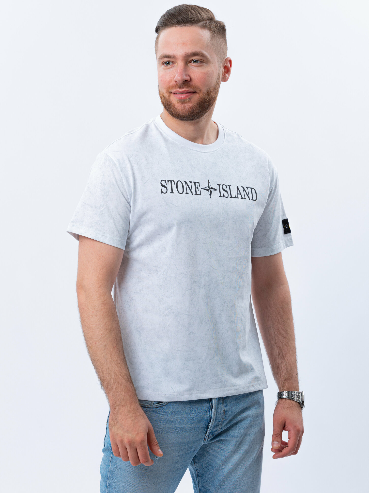 Футболка мужская белая с серым принтом 746 2 размер L (48) STONE ISLAND