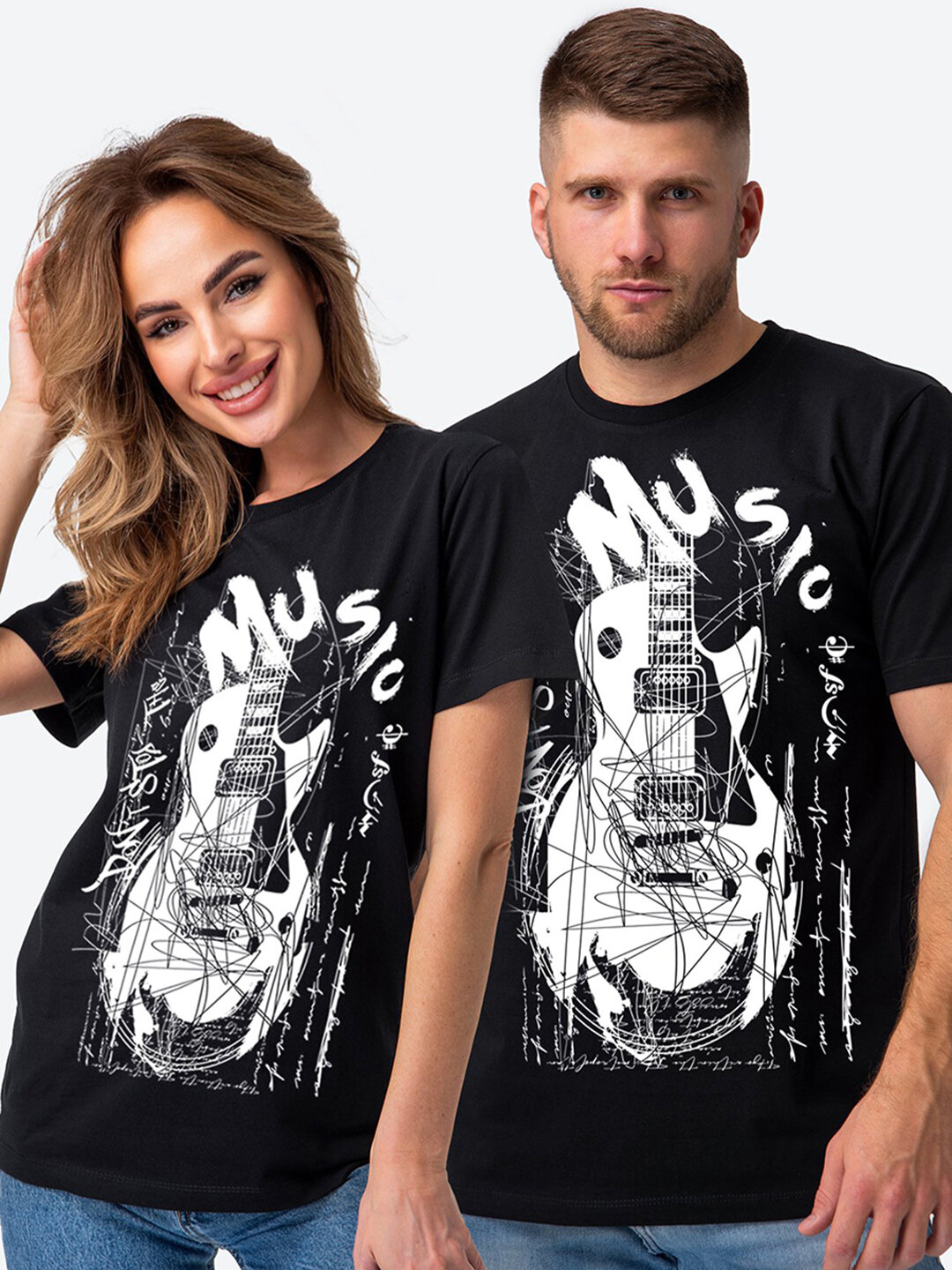 Футболка унисекс оверсайз хлопок HappyFox, HF9111A гитара,черный 48