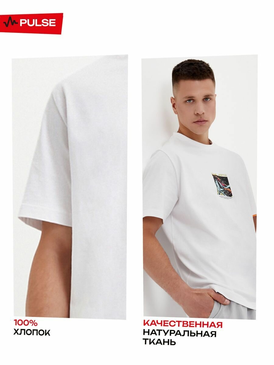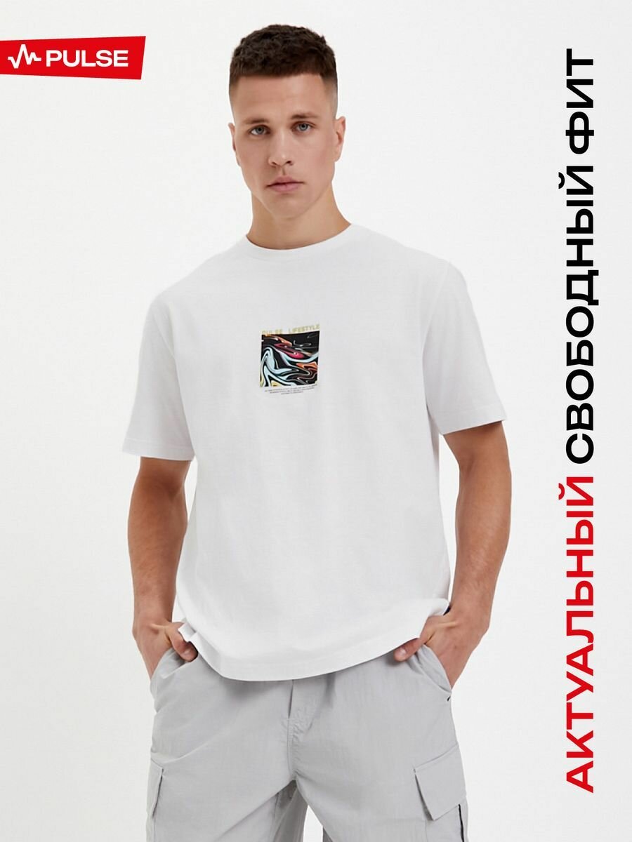 Мужская белая футболка c-neck c принтом Pulse 41MP-T5200