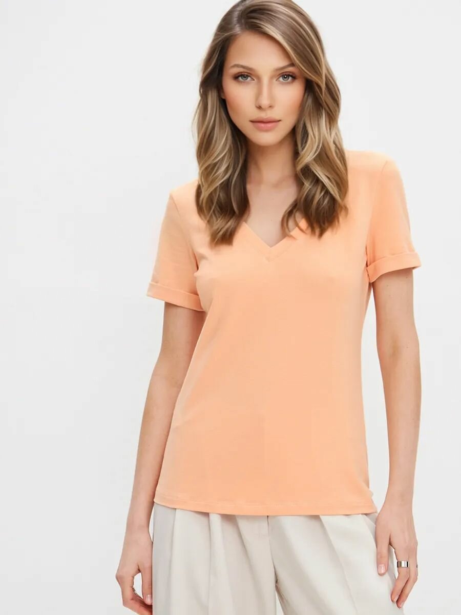 1015K1 Футболка с глубоким V-вырезом HIGH TEMP, Абрикосовый, 44/46