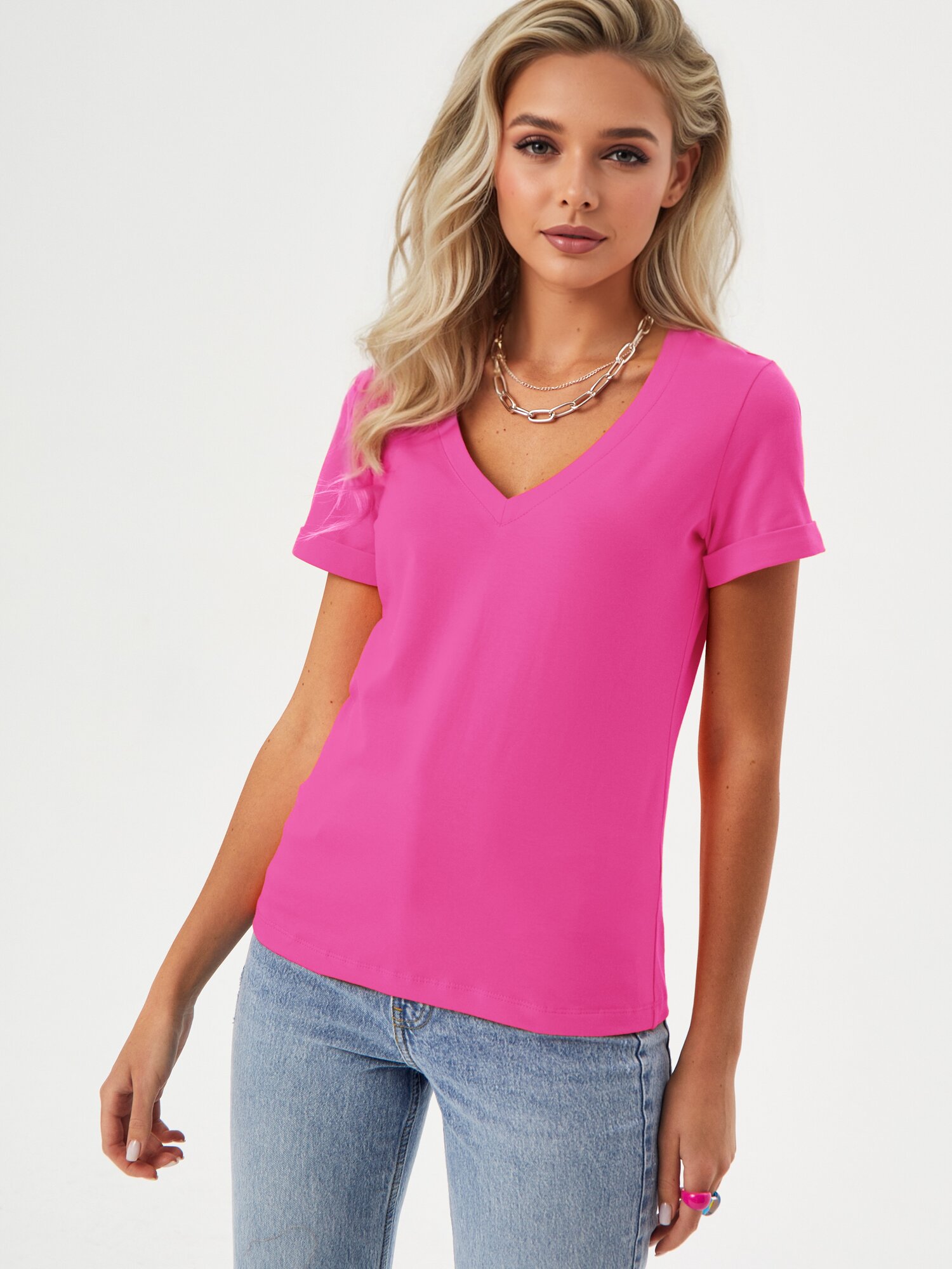 1015K1 Футболка с глубоким V-вырезом HIGH TEMP, Фуксия, 42/44