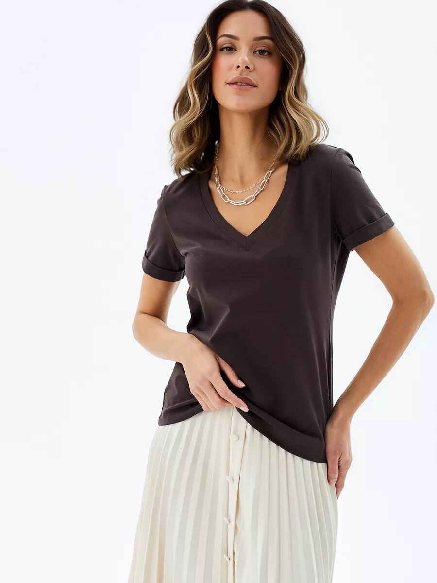 1015K1 Футболка с глубоким V-вырезом HIGH TEMP, Горький шоколад, 42/44