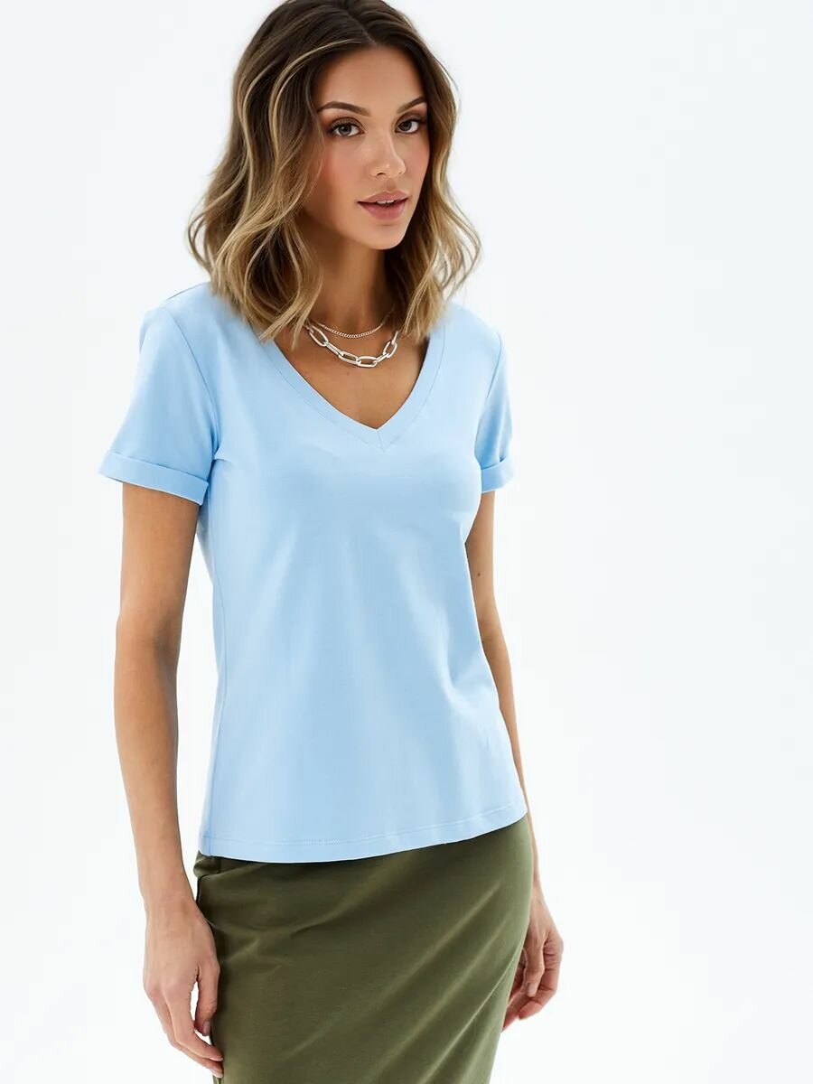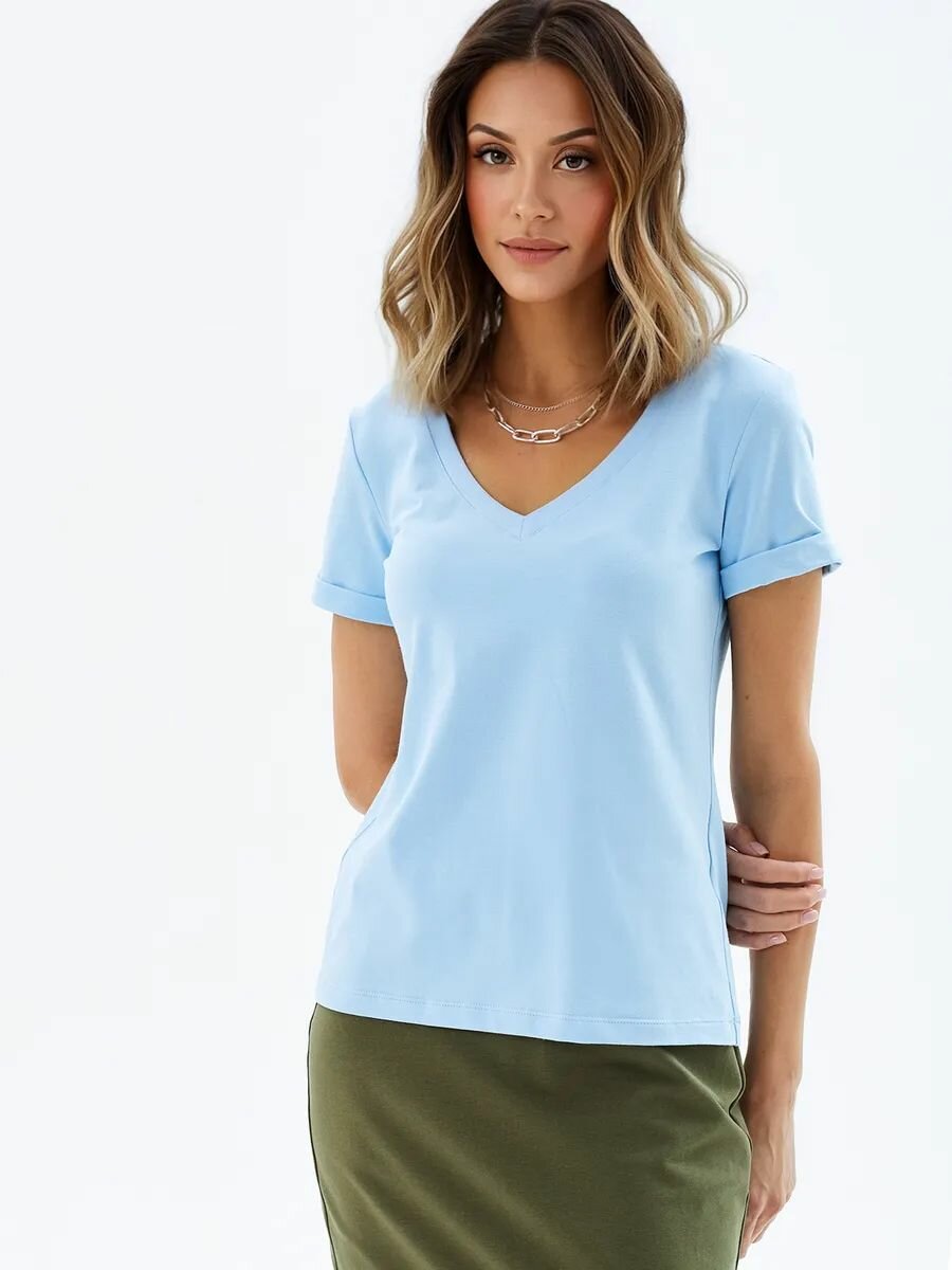1015K1 Футболка с глубоким V-вырезом HIGH TEMP, Небесный, 44/46