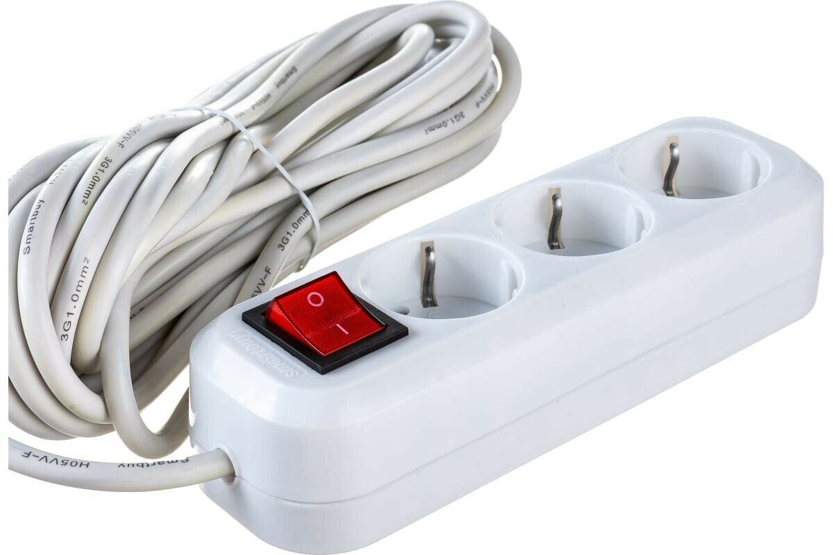 Удлинитель SmartBuy SBE-16-3-07-ZS, 3 розетки, с/з, 16А / 3500 Вт белый 7 м 1 м² 3