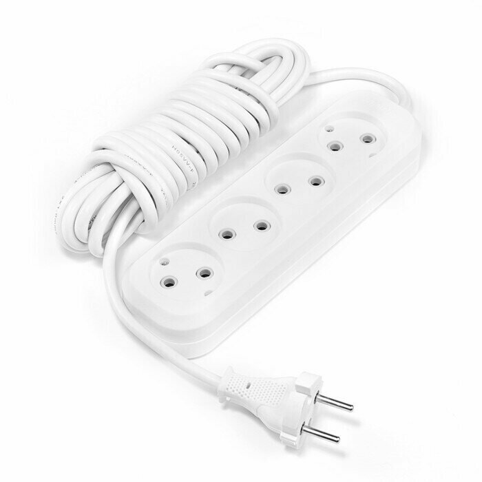 Smartbuy Удлинитель Smartbuy, 4 розетки, 5 м, 10 А, 2200 Вт, ПВС 2х1 мм2, без з/к, белый