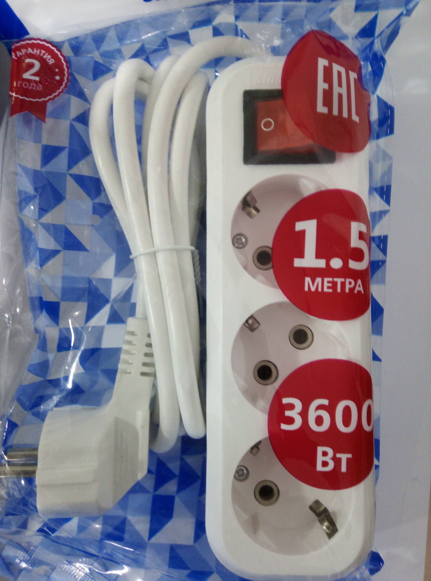 | Плюсы: | Идеальный удлинитель за 244 рубля! Искала именно такой: с выключателем на корпусе, не слишком длинный, со световой индикацией. |