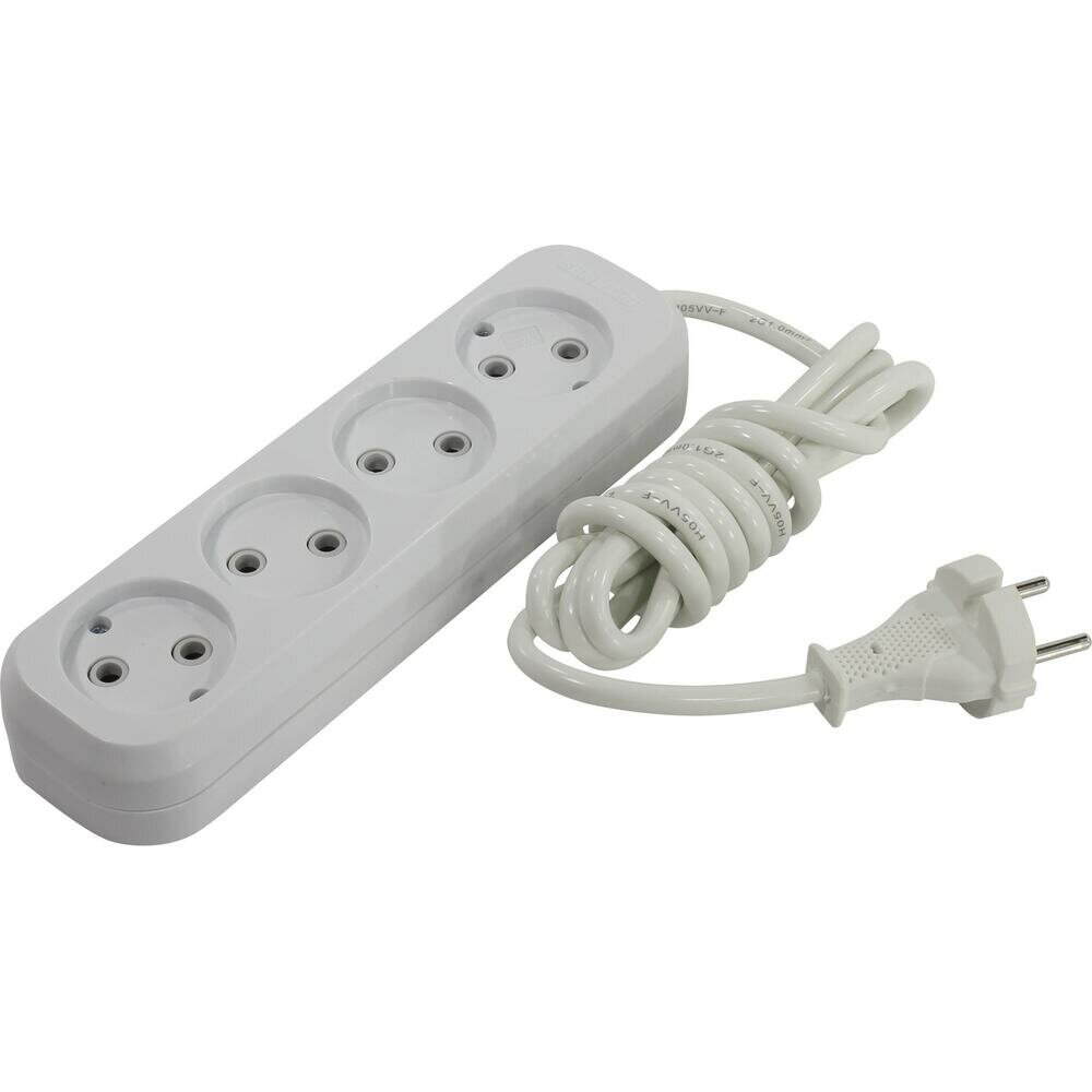 Удлинитель 4 гнезда 2 метра 10А/2,2кВт без заземления ПВС 2х1,0 (SBE-10-4-02-N) (1/50)