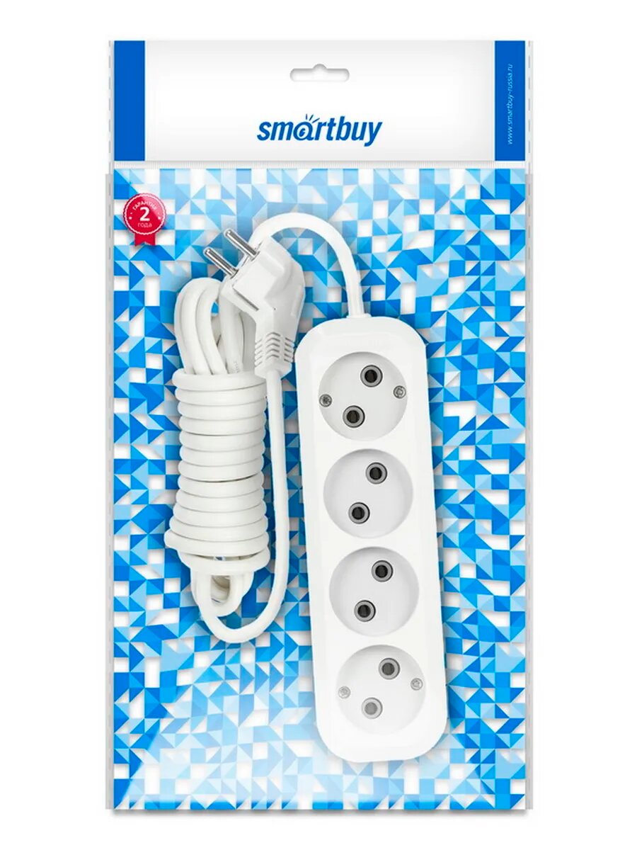 Удлинитель без заземления SMARTBUY SBE-10-4-03-N 4 розетки, 3,0м, белый