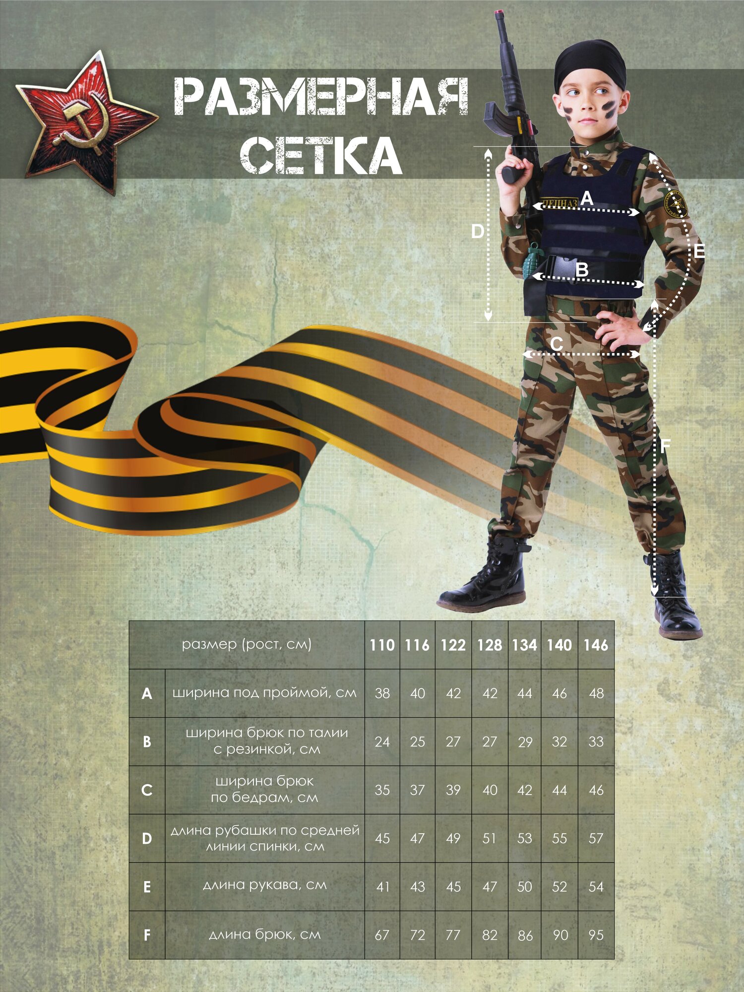 Форма солдата военная для мальчика на 9 мая / детский, костюм