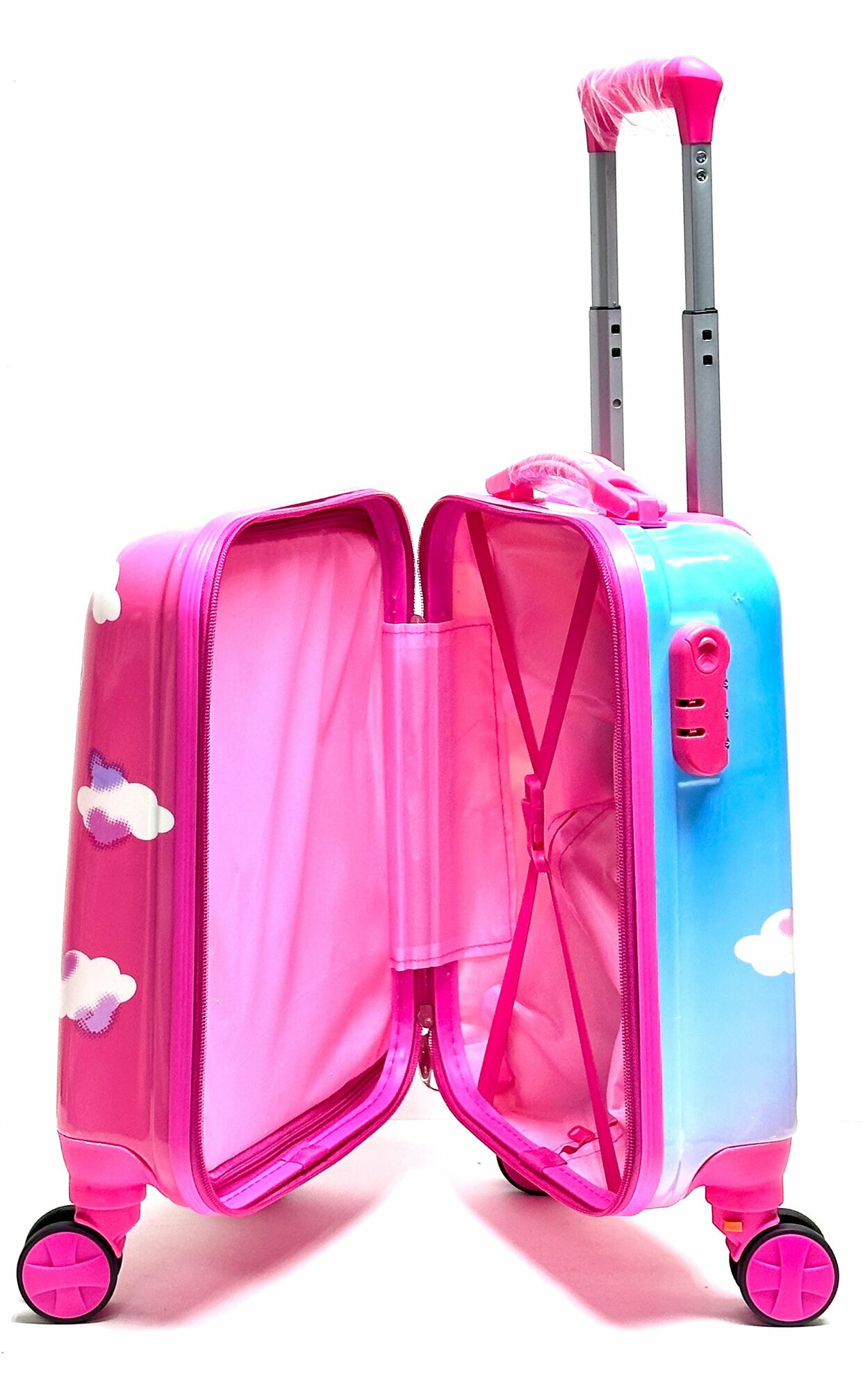 Чемодан дет. Котик 20", 35х20х40, отд. на молнии, 4 колеса, розовый