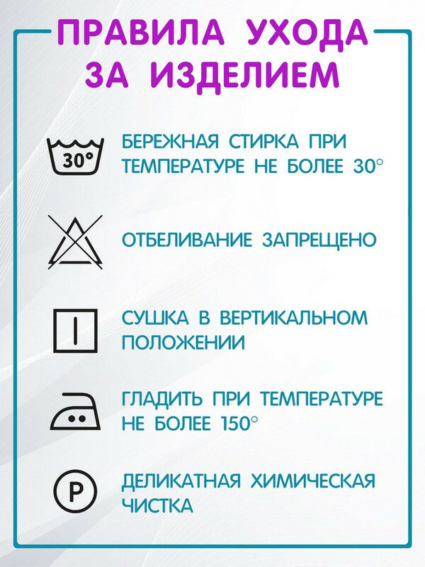 | Дополнительная информация | Стирка при температуре 30С, отбеливание запрещено |