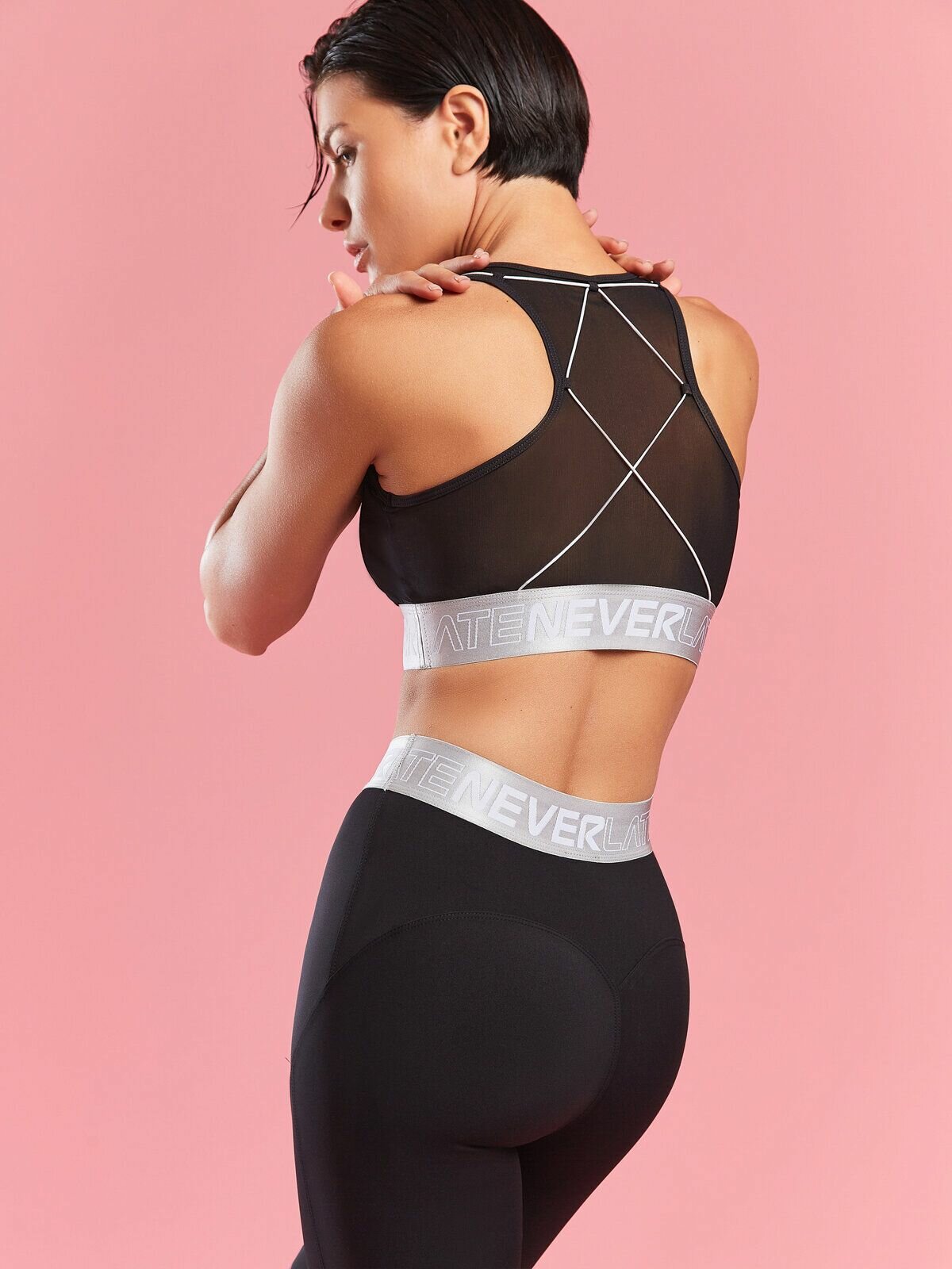 Топ-бра NEVERLATE женский со вставными чашками и вставками из сетки черный