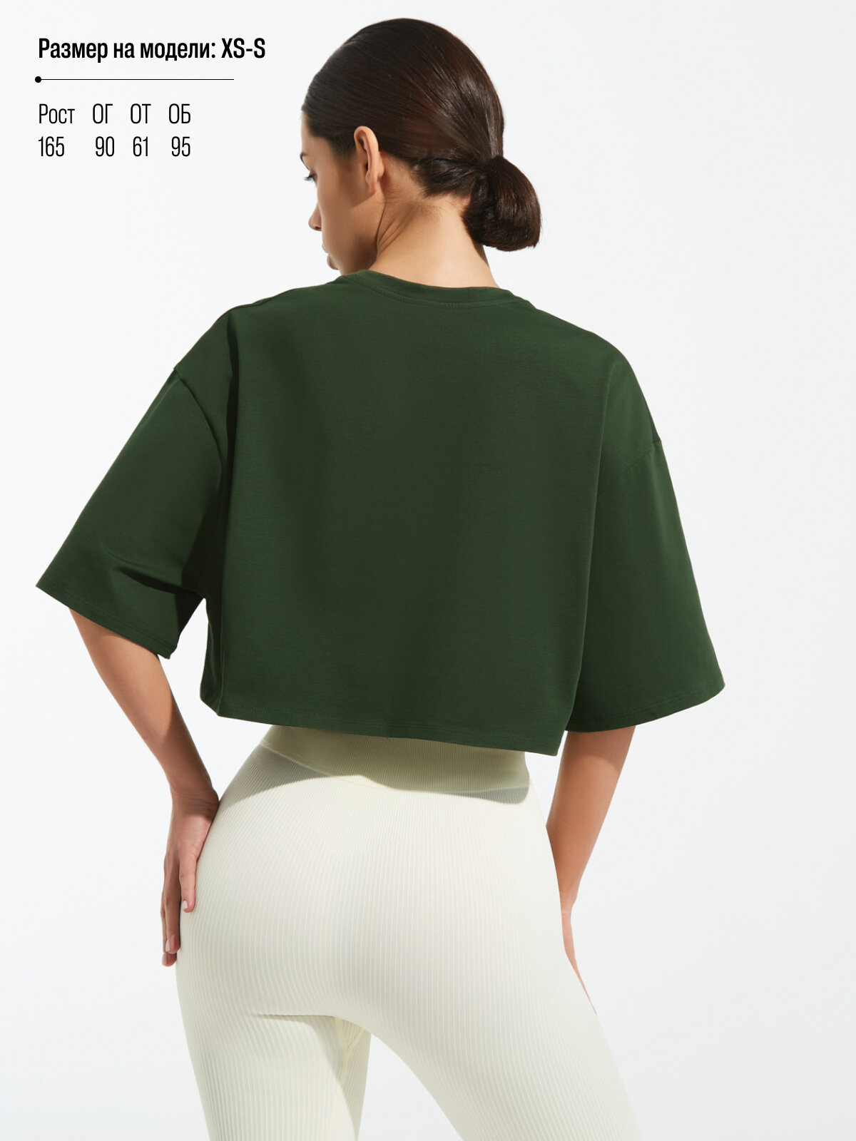 Футболка NEVERLATE из хлопка укороченная оверсайз зеленая женская
