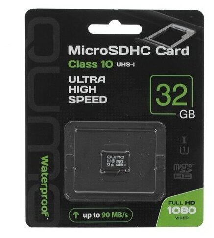 Карта памяти Qumo microSDHC 32 ГБ Class 10, UHS-I, R 90 МБ/с, черный