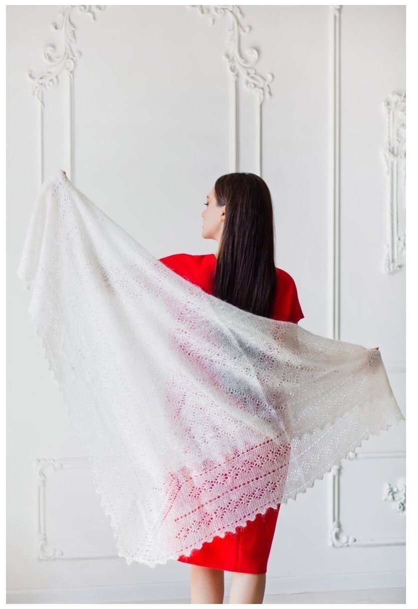Русские мотивы / Пуховый платок/палантин/Пуховая шаль/белый/русское кружево