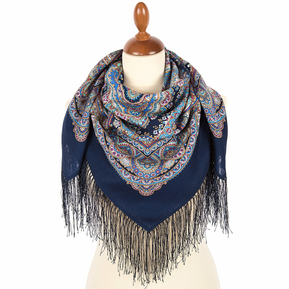 Купить Платок Павловопосадская платочная мануфактура для женщин,89х89 см, синий/голубой/бежевый