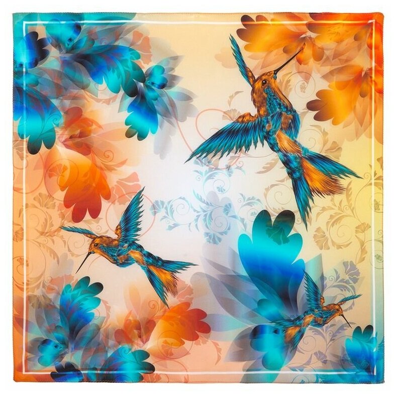 Платок VENERA для женщин,90х90 см, фиолетовый, белый, оранжевый, розовый, зеленый