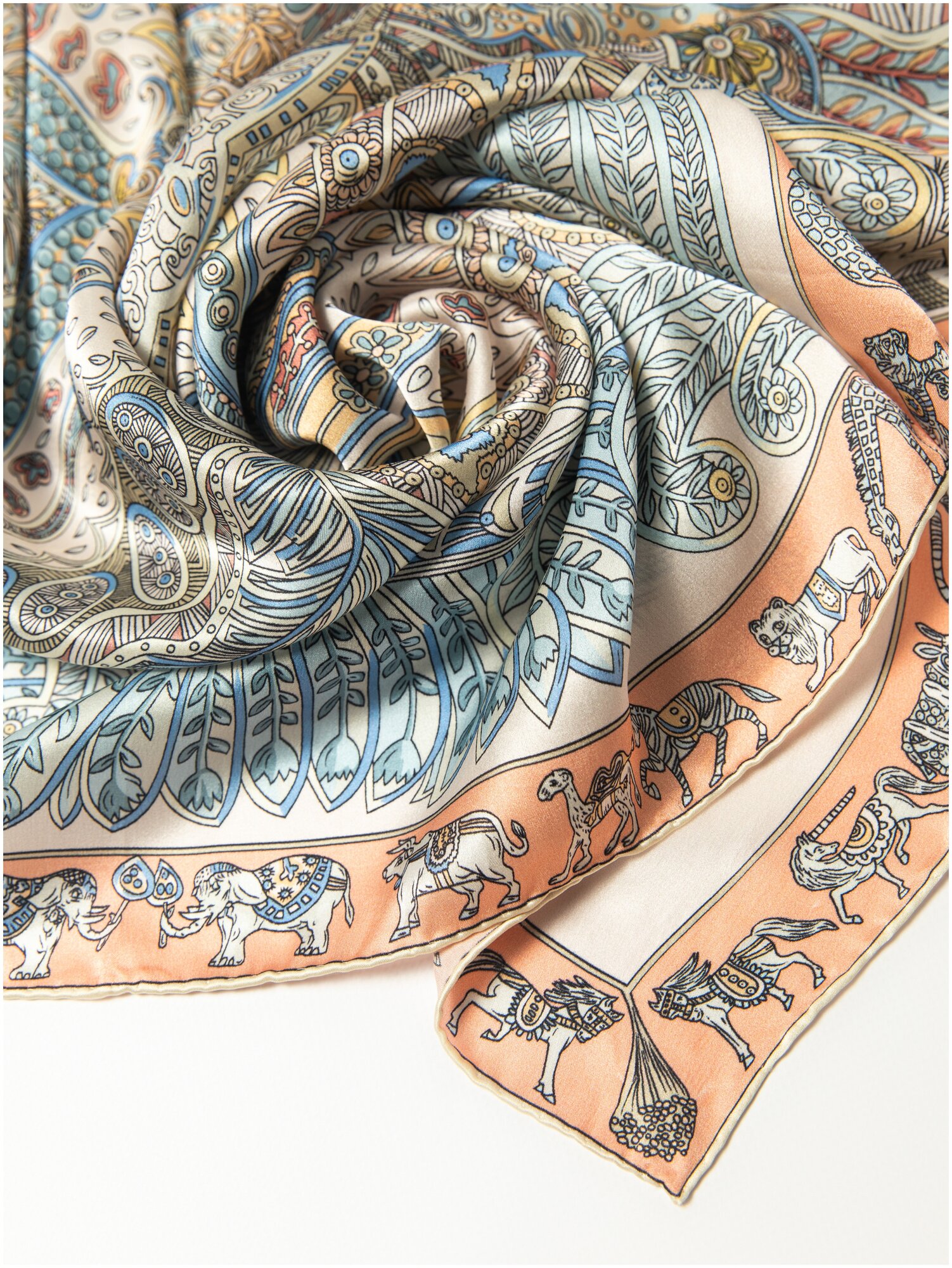 Женский шелковый платок на шею шарф палантин бежевый GIN LAV