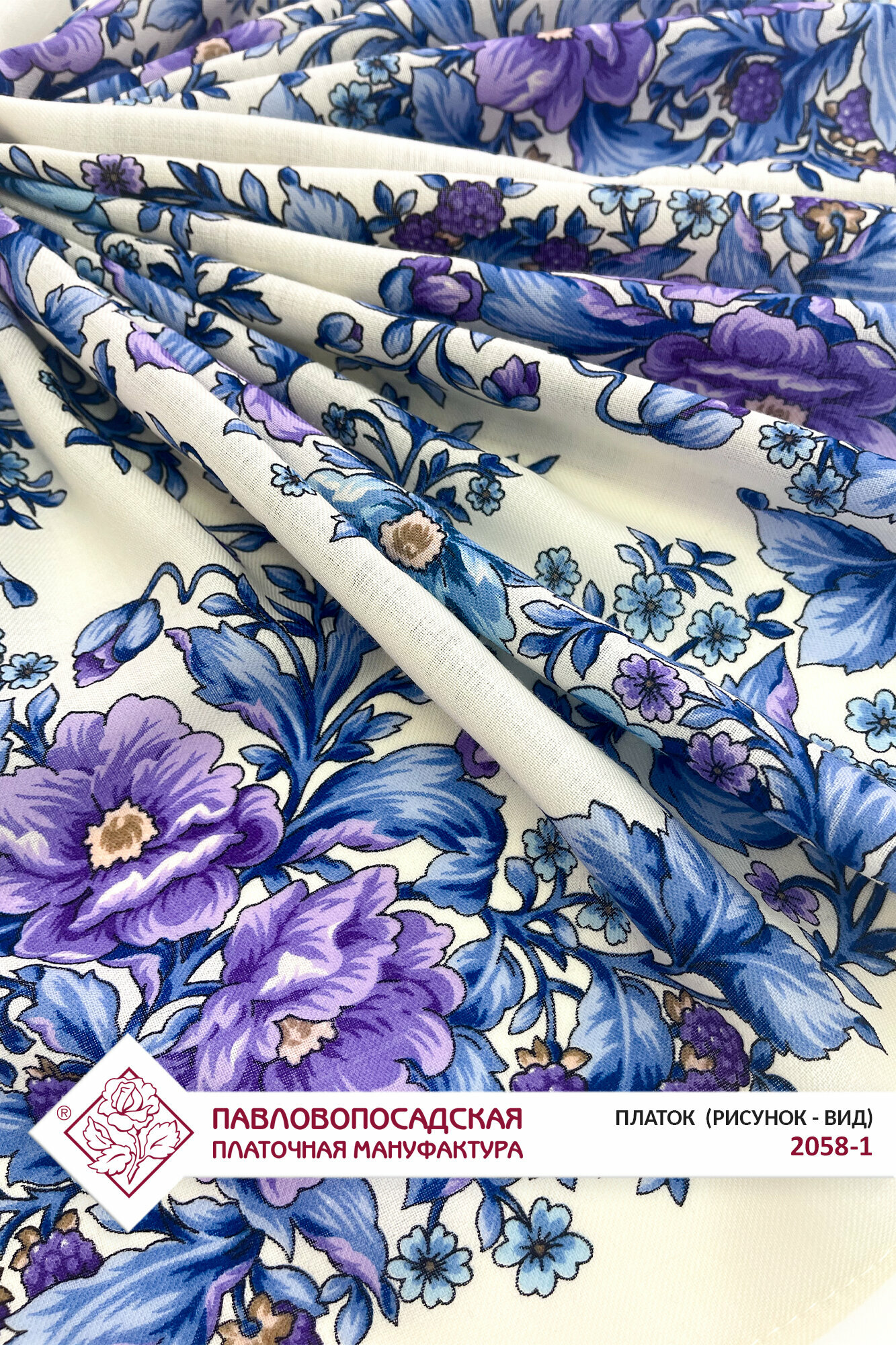 Платок Павловопосадская платочная мануфактура для женщин,72х72 см, белый/синий интересное: