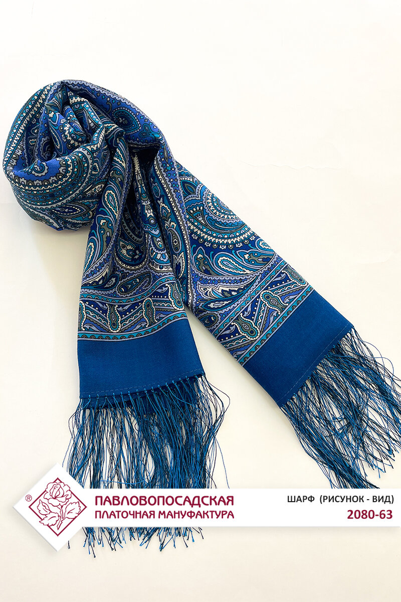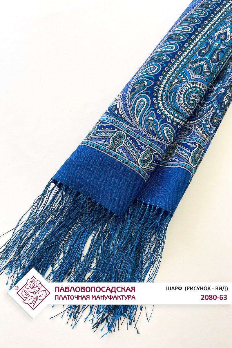 Шарф Павловопосадская платочная мануфактура для женщин,150х60 см, one size, синий интересное: