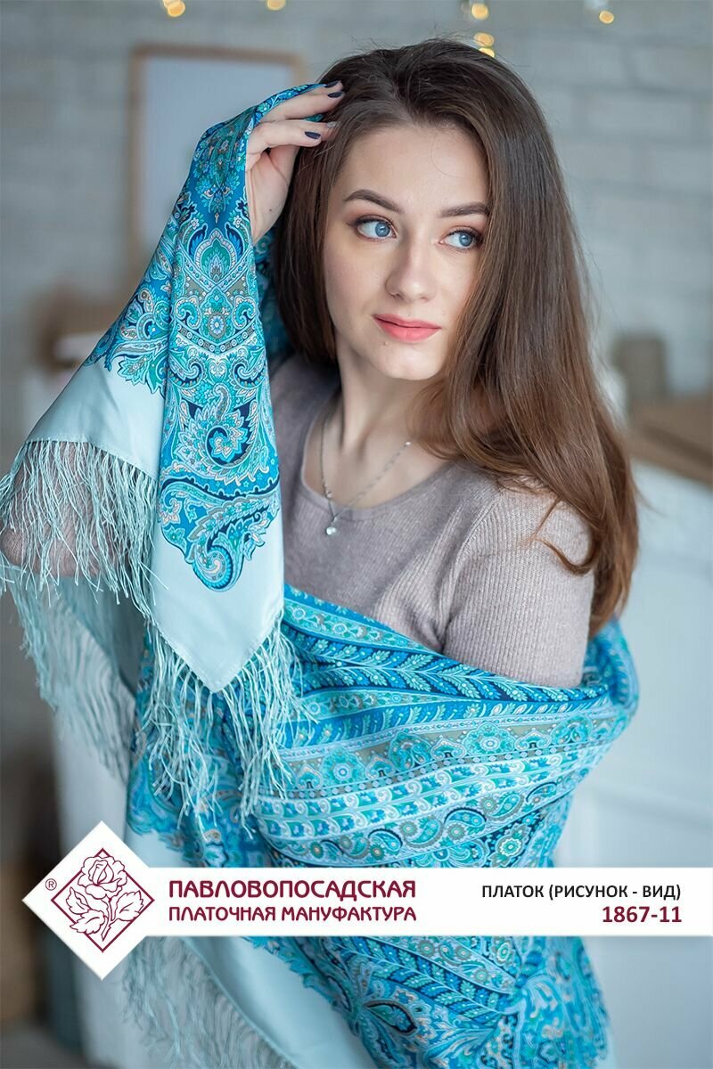 СохранитьПлаток Павловопосадская платочная мануфактура для женщин,130х130 см, голубой, синий интересное: